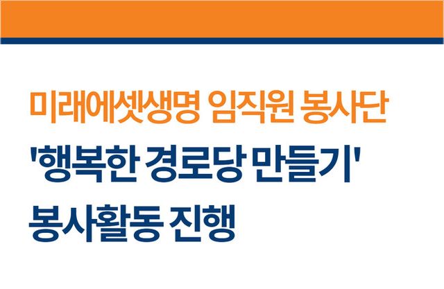 한편, 미래에셋생명의 행복한 경로당 만들기 봉사활동은 2012년 마포노인종합복지관과 협력한 이후 13년 넘게 이어져온 대표 사회공헌 활동 중 하나다.