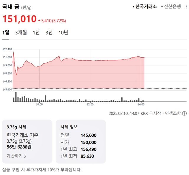 국내 금시세(금값)가 10일 오후 상승세(전 거래일 대비)를 보이고 있다.