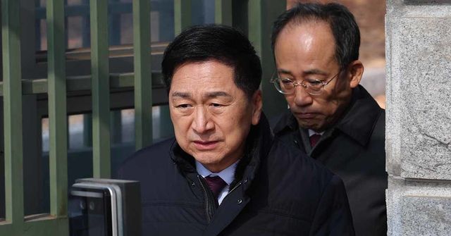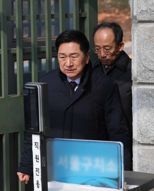 김기현 국민의힘 의원이 10일 오후 경기 의왕시 서울구치소 앞에서 국민의힘 의원들과 함께 윤석열 대통령 면회를 마친 후 나오고 있다. / 뉴스1