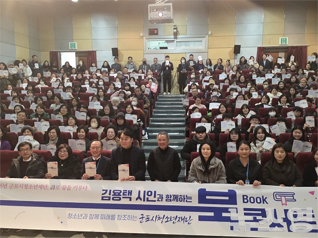 (군포=뉴스영 공경진 기자) 하은호 군포시장(군포시청소년재단 이사장)이, 10일 군포시청소년수련관에서 열린 ‘김용택 시인과 함께하는 북콘서트’에 참석해 시민들과 소통하는 시간을 가졌다.