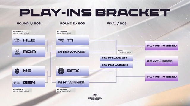 LCK CL 킥오프 플레이-인은 이날 오후 5시 한화생명e스포츠와 OK저축은행 브리온의 경기로 시작된다. 이후 오후 7시 30분에는 농심 레드포스와 젠지 글로벌 아카데미의 경기가 예정돼 있다.