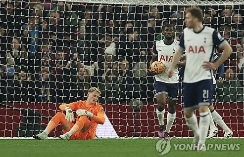 토트넘도 결정적 찬스를 잡았다. 전반 23분, 무어가 우측면에서 페널티박스 안으로 크로스를 올렸다. 손흥민이 쇄도를 시도했다. 골키퍼와 일대일 기회를 맞이했다. 손흥민은 오른발 슈팅을 시도했지만 골키퍼 선방에 막혔다. 공격수라면 충분히 넣었어야 할 '빅찬스미스'였다.