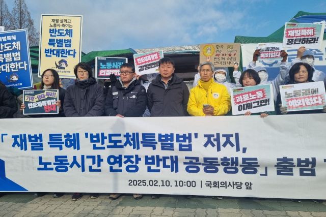 반도체 노동자의 건강과 인권지킴이 반올림, 전국금속노동조합, 노동당, 녹색당, 정의당 등 70여 단체가 모인 '제벌 특혜 반도체특별법 저지·노동시간 연장 반대 공동행동(공동행동)'은 10일 국회 앞에서 출범 기자회견을 열고 이같이 밝혔다.