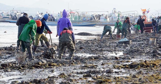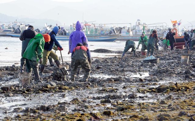 개불을 잡고 있는 전남 강진군 사초리 주민들. / 뉴스1 자료사진
