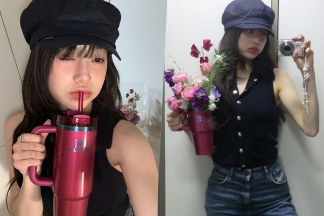 공개된 사진 속 츄는 커다란 텀블러를 손에 들고 작은 얼굴을 인증하고 있다. Y2K 분위기가 풍기는 모자에 베스트 룩을 소화한 츄는 베스트 안에 아무것도 받혀 입지 않은 과감한 패션으로 시선을 강탈했다.