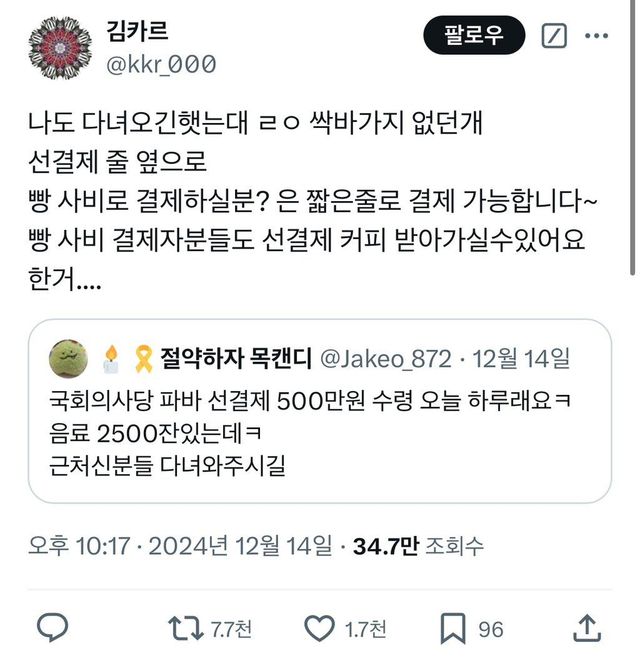 이번 시위때 선결제받았던 자영업자들 이랬던 곳이 많았다고 증언들 나오는 중