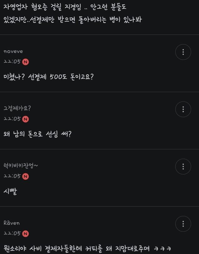 이번 일로 자영업자들 양심없게 돈번다고 욕먹는 중