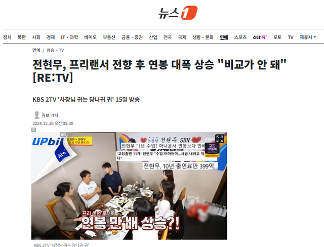 신입 아나운서 김진웅은 전현무에게 "궁금한 게 있는데, 프리랜서 선언하는 걸 많이 권하시는 편인지, 요즘은 라디오 한 번에 5400원, 뉴스 8000원, 야구 중계 1만 6000원이다, 그런데 전현무 선배님 프리랜서 선언하시고 연봉이 만 배가 올랐다고 들었다"라고 물었다.