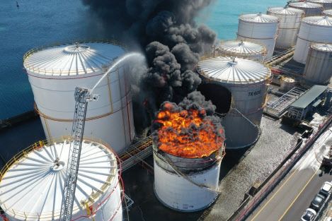 이 탱크에는 석유를 녹이는 용제의 일종으로 인화성이 큰 것으로 알려진 솔베이트가 1600㎘가량 있었던 것으로 파악됐다.