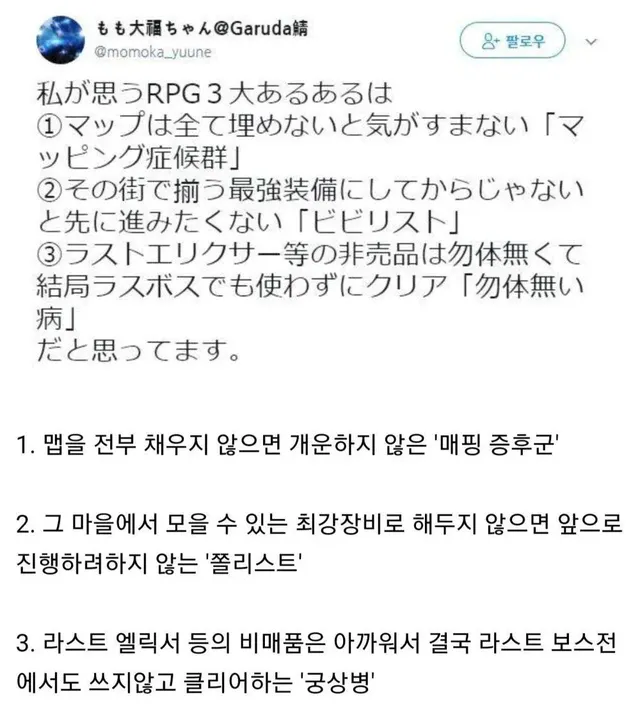 1번의 변형으로 마을의 모든 NPC와 대화해봐야 하는 투머치토커병도 있다