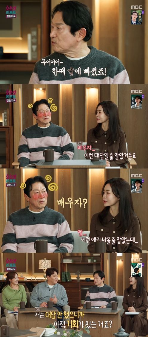 김응수는 "한때 술에 빠졌었다. 친구 만나서 뭐하냐. 술 마시는 거다"라고 말했다. 그러자 박지민은 "배우자 이런 대답일 줄 알았다. 딸 이런 얘기 나올 줄 알았는데"라며 실망한 기색을 보였다.