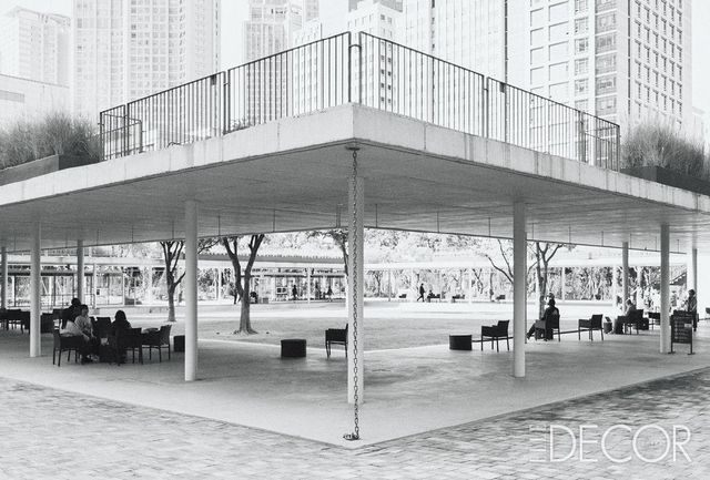 구조물이 들어선 것 외에 또 다른 변화는 앉을 곳이 많아졌다는 사실이다. 사각형 회랑 아래 걸터앉거나 여기저기 놓인 의자에 앉아 있는 모습이 이곳만의 특별한 풍경을 만든다. 도시에서 앉는 공간은 왜 중요한가