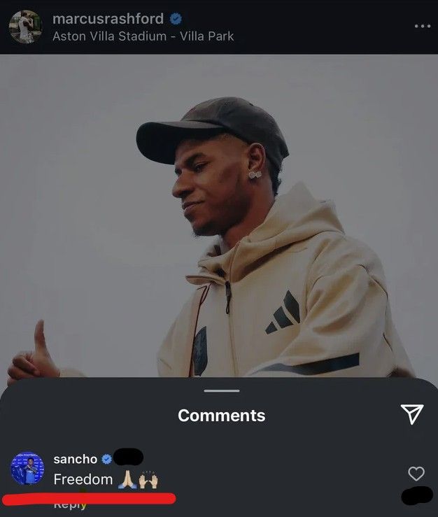 그러나 논란이 발생했다. 래시포드의 해당 게시글에 산초가 댓글을 남겼다. 산초는 '자유(Freedom)'라는 단어와 함께 두 손을 모은 이모지와 두 손을 활짝 펼친 이모지를 각각 하나씩 옆에 붙여 댓글을 남겼다.