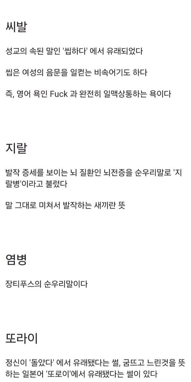한국 욕들의 유래