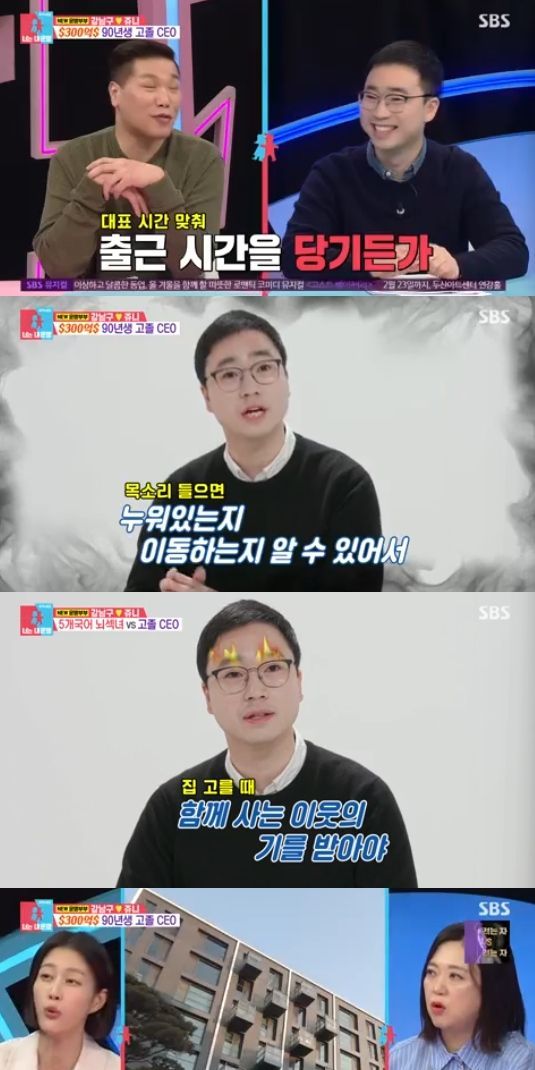 이를 들은 이지혜는 "꼰대 냄새가 난다"고 했고, 서장훈 역시 "젊은 CEO 치고는 관여를 엄청 많이 한다"고 고개를 저었다. 강남구는 "저도 저같은 상사가 있다면 진짜 싫을 것 같다"고 셀프 디스를 했고, 김구라는 "알고 있으니 다행"이라고 돌직구를 던졌다.