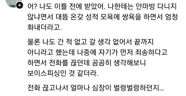 개인정보 털린거로 랜덤으로 젊은 남성들한테만 전화돌려서