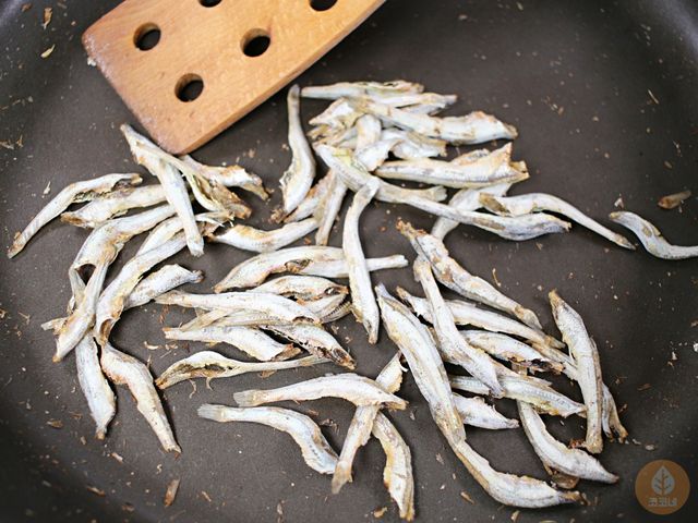 손질한 멸치를 후라이팬에서 중불로 볶아주세요.