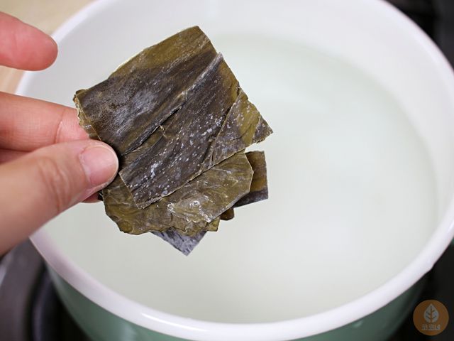 다시마를 건져낸 뒤 1~2분 더 끓이면서