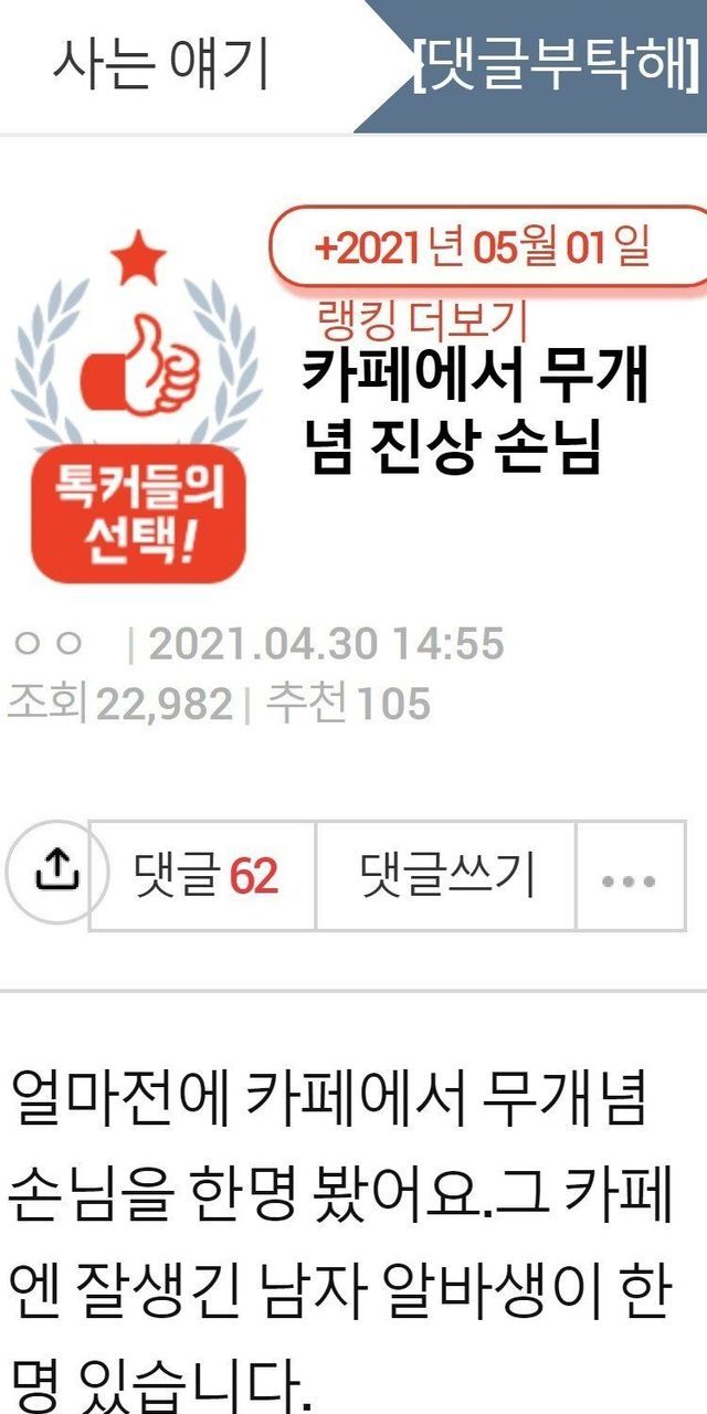 19살 연하 여직원을 좋아하고 있습니다