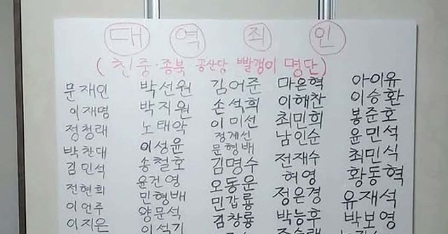 보수성향 네티즌들의 단톡방에 올라온 것으로 알려진 게시물엔 누군가 '대역죄인(친중·종북 공산당 빨갱이 명단)'이란 제목 아래 적은 107명의 명단을 촬영한 것이다.