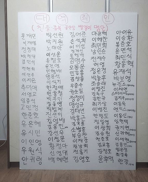 한편, 명단을 접한 누리꾼들은 “글씨체를 보니 초등학생 수준의 사람이 작성한 것 같다” “초등학교가 최종학력인 사람이 쓴 것 아니냐” “보석같은 이름들이 많은 것 같다” “우리나라 보물들이네” “참으로 정성스럽다” 등의 비판적인 반응을 보였다.