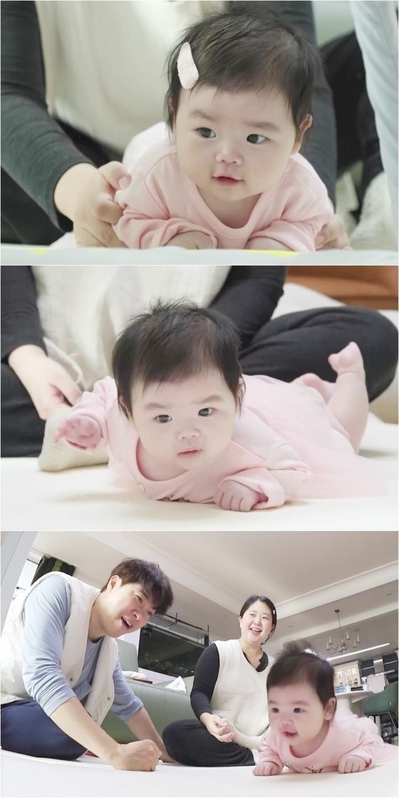이날 재이는 배를 바닥에 대로 엎드려 있는 자세인‘터미타임’을 거뜬히 해낸다.특히 재이는 목을 제대로 가눈 채로 거울에 비친 자기 모습을 뚫어져라 바라보며 해맑은 웃음을 터뜨려 보는 이들을 흐뭇하게 한다.이때 재이가 돌연 배밀이에 도전해 박수홍을 깜짝 놀라게 한다.재이는 눈썹에 힘을 주며 이글이글 불타는 눈빛을 보인다.이후 재이가 통실통실한 롱다리로 물에서 발길질하듯 세차게 다리를 흔들며 앞으로 나아가기 시작한 것.재이는 첫 배밀이에 무려3cm전진,박수홍은 물론 최지우와 안영미의 환호를 자아내 스튜디오를 들썩이게 만들었다는 후문.이에 전진을 위해 포기하지 않고 손과 다리를 꼬물꼬물 움직이는 재이의 몸짓이 귀여움을 선사할 예정이다.