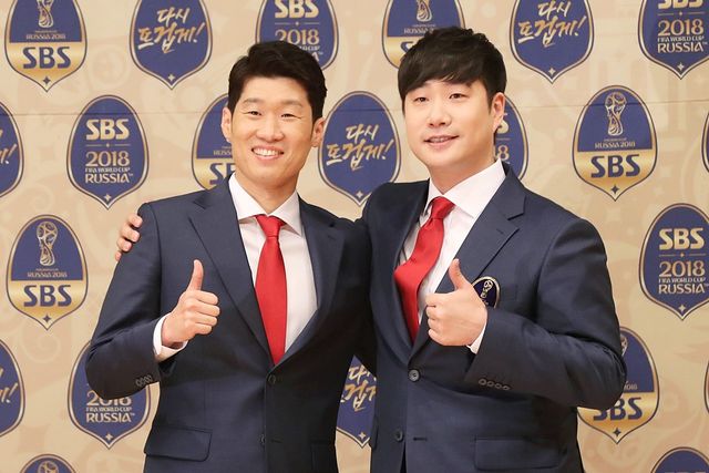 박지성과 함께 한 배성재. 배성재는 스포츠 캐스터로 활약하며 여러 프로그램에 출연하고 있다. / 뉴스1