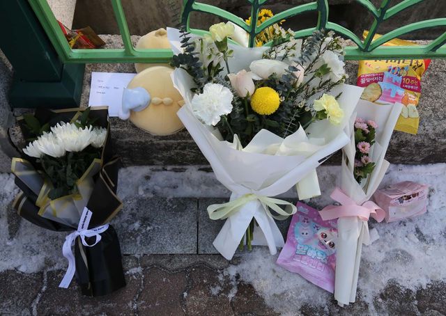 지난 10일 대전 서구 한 초등학교에서 1학년 A양이 교사에 의해 흉기에 찔려 사망하는 사고가 발생했다. 11일 범행이 발생한 학교입구에 A양을 추모하는 국화꽃과 메모가 놓여 있다. / 뉴스1