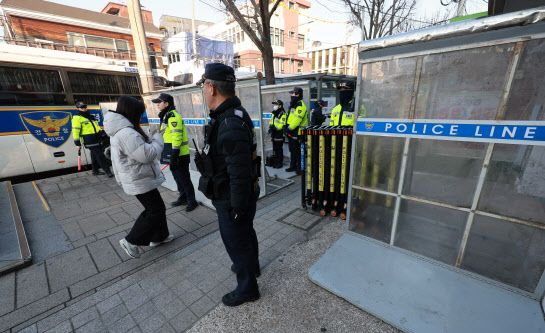 이날 안국역 5번 출구 앞에서 개최된 탄핵 반대 집회에 대한 경계도 삼엄하다. 경찰은 집회 전부터 안국역 5번 출구 앞 삼일대로에 약 4m 높이의 거대한 벽을 설치하고 차량의 통행을 통제했다.