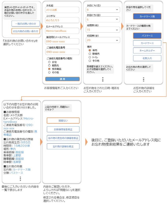분실물 접수도 챗봇을 통해 간편하게 이루어진다. 기존에는 이메일을 통한 여러 번의 문의 및 답변이 필요했으나, 챗봇을 통해 고객이 물건을 분실한 상황과 정보를 한 번에 입력하면, 분실물 접수 과정에서 발생하는 번거로움을 크게 줄일 수 있다.