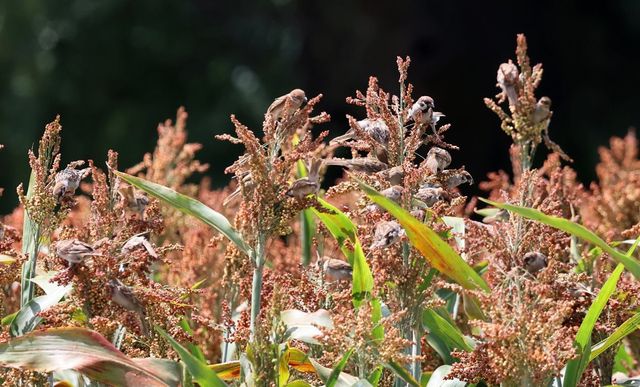 절기 처서를 앞둔 강원도 강릉시의 한 수수밭에서 참새들이 다 익은 수수를 쪼아먹고 있다. 기사 이해를 돕기 위한 자료 사진 / 연합뉴스