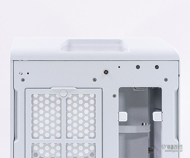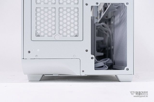 편의성도 눈에 띈다. 케이스 상단의 메인보드 I/O 부분은 탈착식 커버로 가릴 수 있으며, 자석 방식이라 필요할 때 쉽게 붙였다가 뗄 수 있다. 앞서 언급한 것처럼 백커넥트 메인보드를 지원하는 점도 주목할 만하다. 커넥터 연결 단자가 메인보드 뒷면에 배치되는 방식이기 때문에 케이스 내부를 더욱 깔끔하게 유지할 수 있다.