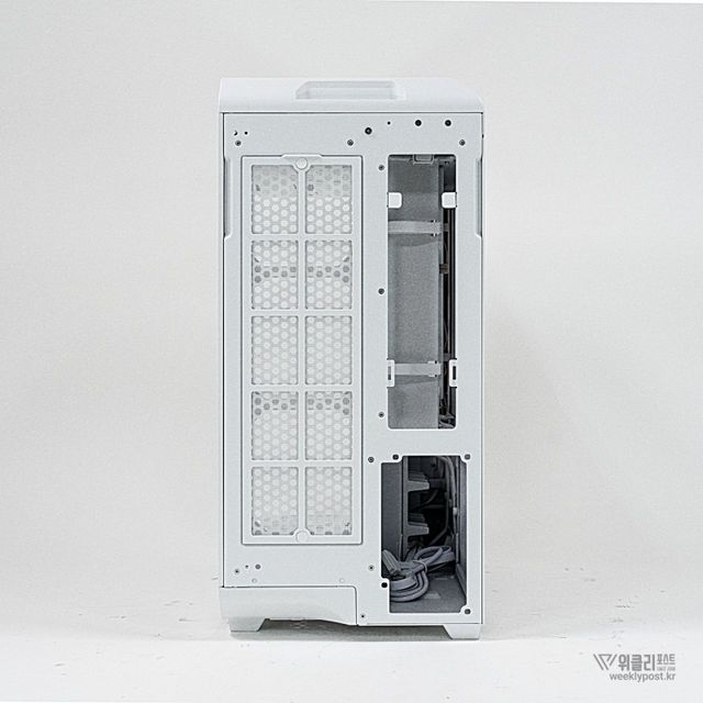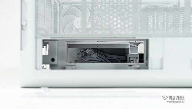 가격이 저렴한 PC 케이스를 구매하면 선 정리 공간이 부족한 경우를 종종 접하게 된다. 케이블을 숨기기 어렵다 보니 케이스 측면이 불룩 튀어나오는 상황이 빈번하다. 그러나 엑스허틀은 듀얼 챔버 설계를 채택해 이런 문제를 효과적으로 해결했다. 메인 챔버와 서브 챔버를 분리해 케이블과 저장 장치를 깔끔하게 정리할 수 있다.