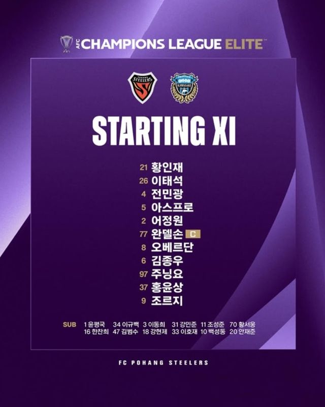 포항 스틸러스는 11일 오후 7시 포항스틸야드에서 열린 2024-25시즌 아시아축구연맹(AFC) 챔피언스리그 엘리트(ACLE) 리그 스테이지 7차전에서 가와시키 프론탈레에 0-4로 완패했다. 16강 진출에 적신호가 켜졌다.