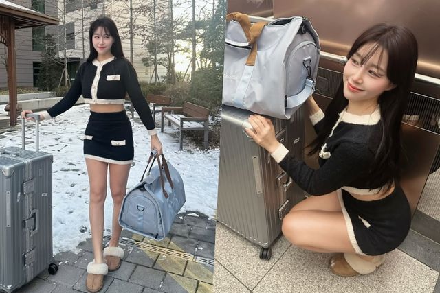 공개된 사진 속 김도아는 블랙 앤 화이트 트위드 셋업을 입고 있는 모습이다. 눈이 쌓인 추운 날씨에도 과감한 크롭톱에 초미니스커트를 소화한 김도아는 돋보이는 S라인으로 시선을 강탈했다. 이어진 사진에서 김도아는 짧은 스커트에도 아랑곳하지 않고 쭈그려 앉아 꿀벅지를 드러내 보는 이를 매료했다.