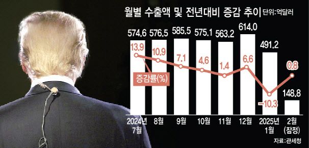 조익노 산업통상자원부 무역정책관은 “반도체 호조와 자동차 수출 반등에 힘입어 2월 전반적으론 수출 증가와 무역수지 흑자 전환이 기대된다”며 “트럼프 행정부의 관세 조치에 대해서도 업계와 긴밀히 소통해 대응해나갈 것”이라고 말했다.