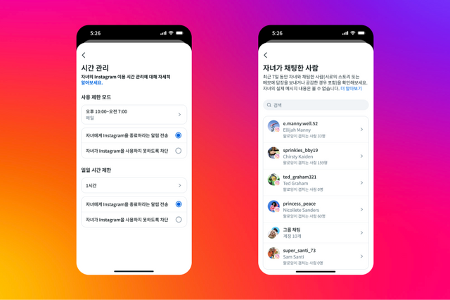 인스타그램은 부모에게 자녀의 앱 사용 시간 결정권을 넘겨주면서도 DM(다이렉트 메시지) 내용과 검색 기록 등은 가려 청소년 기본권 침해 우려를 최소화했다.