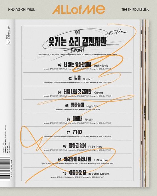 소속사 텐투엔터테인먼트는 12일 공식 채널을 통해 황치열 정규 3집 'ALL OF ME(올 오브 미)'의 트랙리스트를 공개했다.