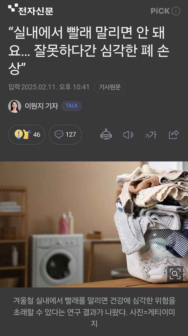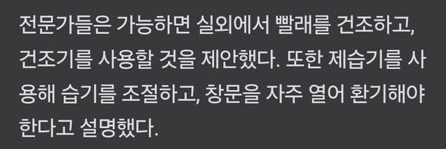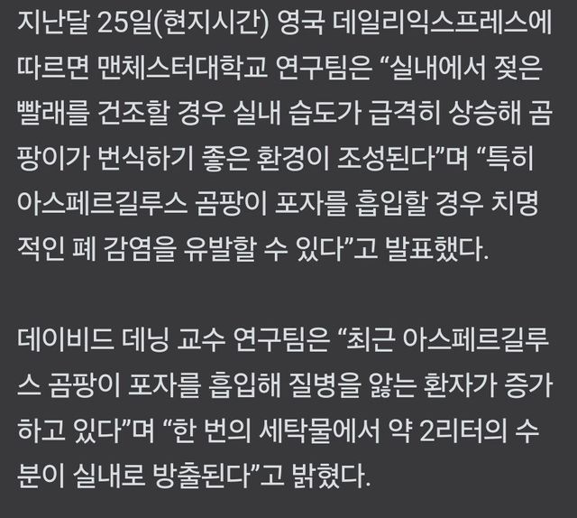 실내건조 -> 습기 상승 -> 곰팡이 번식면역없거나 약하면 폐질환 걸린다함