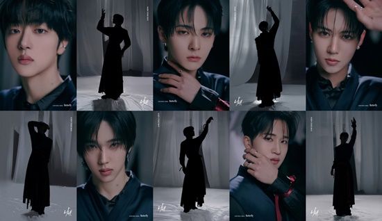 멤버별 클로즈업 및 실루엣 버전 사진은 역동적인 포즈와 표정 연기로 시선을 사로잡는다. 특히 팔을 들어 어딘가를 향해 손짓하는 제스처는 ‘나비’ 퍼포먼스를 향한 궁금증을 치솟게 한다.