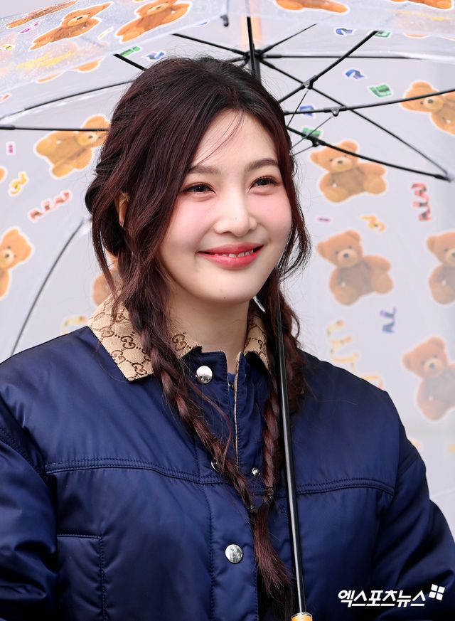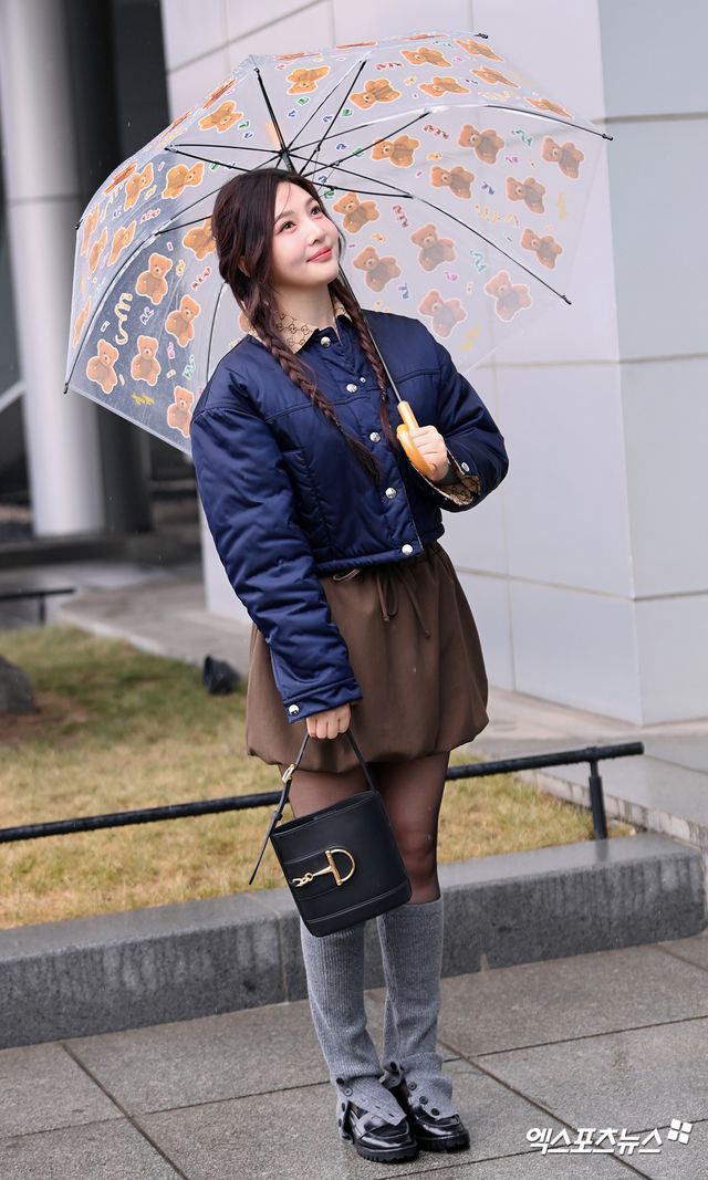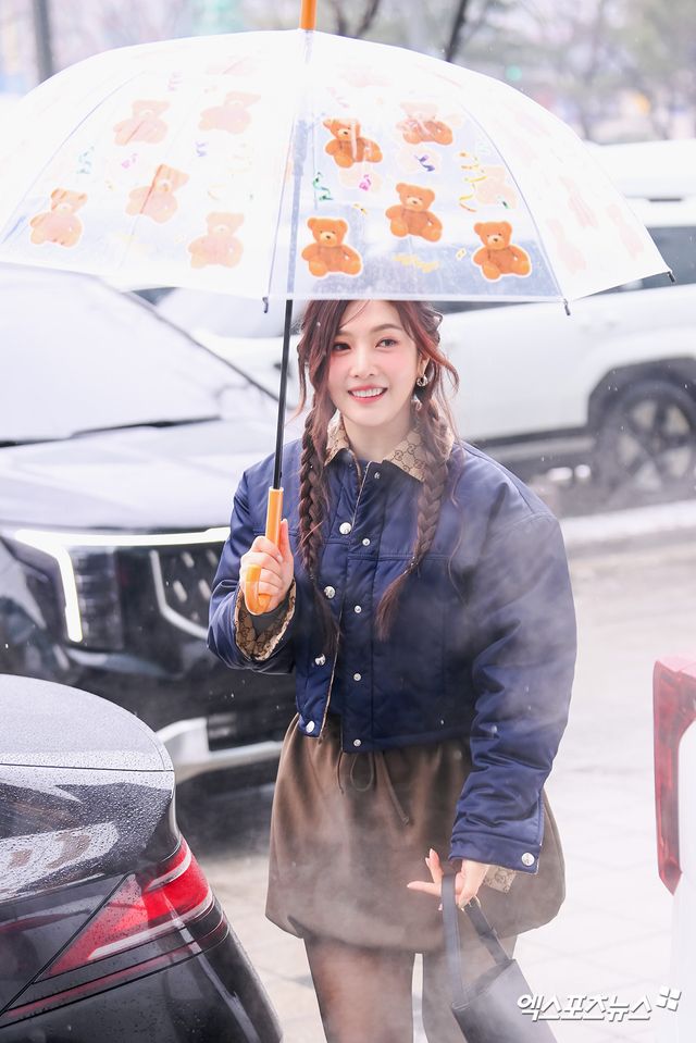 이날 녹화에 참석한 레드벨벳 조이가 출근길에 포즈를 취하고 있다.