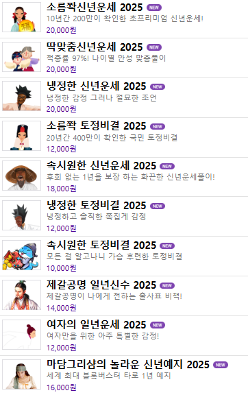 • '소름쫙 신년운세 2025': 나에게 일어날 모든 일을 알 수 있는 상품