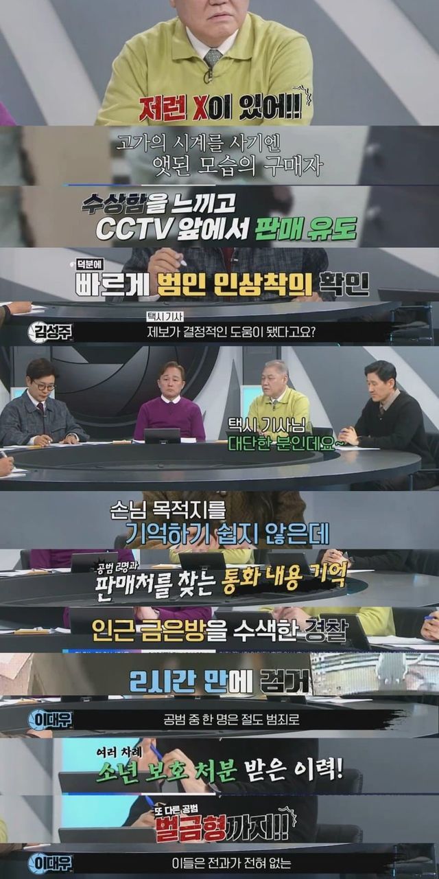 중고거래하러가서 명품시계 들고 튀었지만 금은방에서 붙잡힌 절도범들