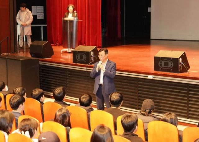 [와이뉴스] 신상진 성남시장은 12일 오전 대학생들의 진로탐색과 행정업무 이해를 위한 ‘2025 동계 대학생 지방행정체험 연수' 역량교육에 참석해 연수생들을 격려했다.