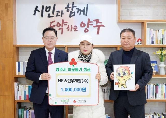강수현 양주시장은 “NEW선우개발(주)의 따뜻한 나눔에 깊이 감사드린다”며 “성금을 소중히 활용해 취약계층의 삶에 실질적인 도움이 되도록 최선을 다하겠다”고 말했다.