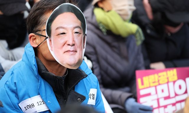 광주에서 열린 집회 참가자가 윤석열 대통령 가면을 쓰고 있다. 자료 사진 / 뉴스1