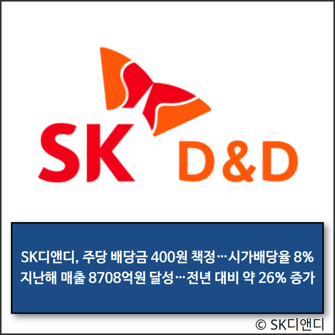 SK디앤디(210980)가 지난 10일 보통주 1주당 배당금 400원을 지급한다고 공시했다. 이후 11일 주가가 크게 반응했다.