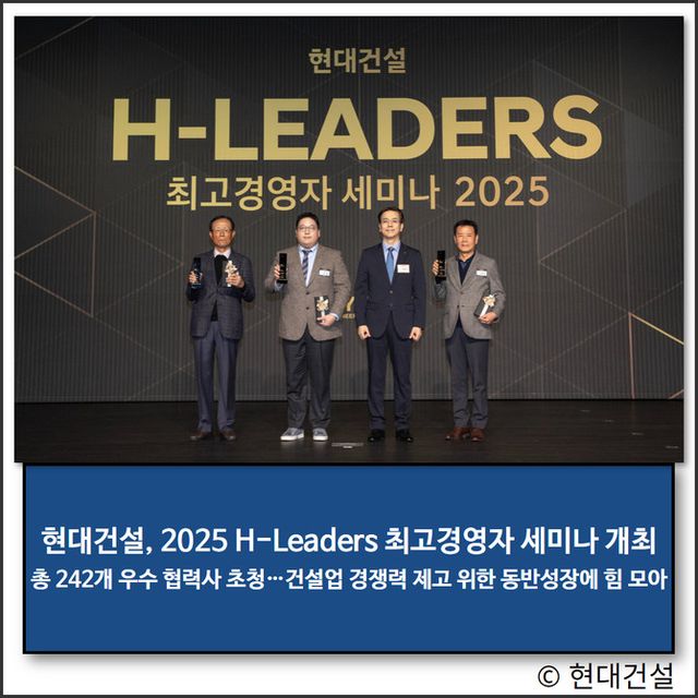 현대건설은 지난 11일 이한우 대표이사와 주요 경영진, 협력사 대표 등 270여명이 참석한 가운데 서울 용산구에 위치한 그랜드 하얏트 서울 호텔에서 '2025 H-Leaders 최고경영자 세미나'를 개최했다.