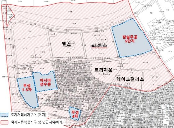 ▲(유지) 잠실주공5단지, 우성1·2·3차, 우성4차, 아시아선수촌