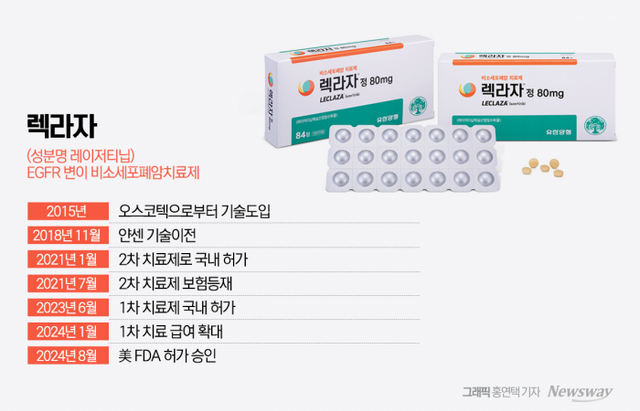 회사측은 "렉라자 병용 요법의 국내 허가는 처방 스펙트럼이 넓어질 수 있다는 점에서 의의가 있다. 현재 단독 요법이 처방되고 있지만, 단독 사용이나 경쟁약물(타그리소)로 치료가 안 되는 환자들이 있을 수 있다"며 "이 시장이 얼마나 될진 모르겠지만 환자들의 선택권이 넓어졌다는데 의미가 있다"고 설명했다.
